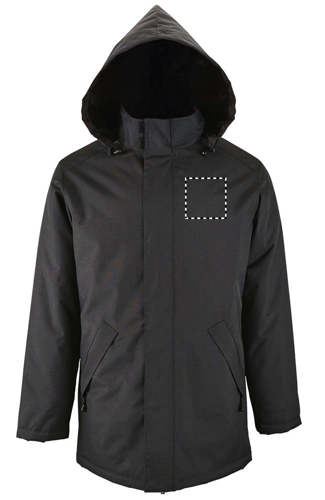SOL'S ROBYN, polsterdatud voodriga unisex jope, 100% polüester – pvc kate, vooder <(>&<)> polster: 100% polüester oxford 300d, lukuga avamine kahekordse liuguriga ja isehaarduvate rihmade ja peidetud trukkidega plokk, kapuuts krae sees, krae sees fliisvoodriga, 2 klapiga välist lukuga taskut, 1 sisetasku, manseti kinnitused. Suuruste sobivuse kohta vaadake tootedokumentatsiooni jaotises olevat suurustabelit.