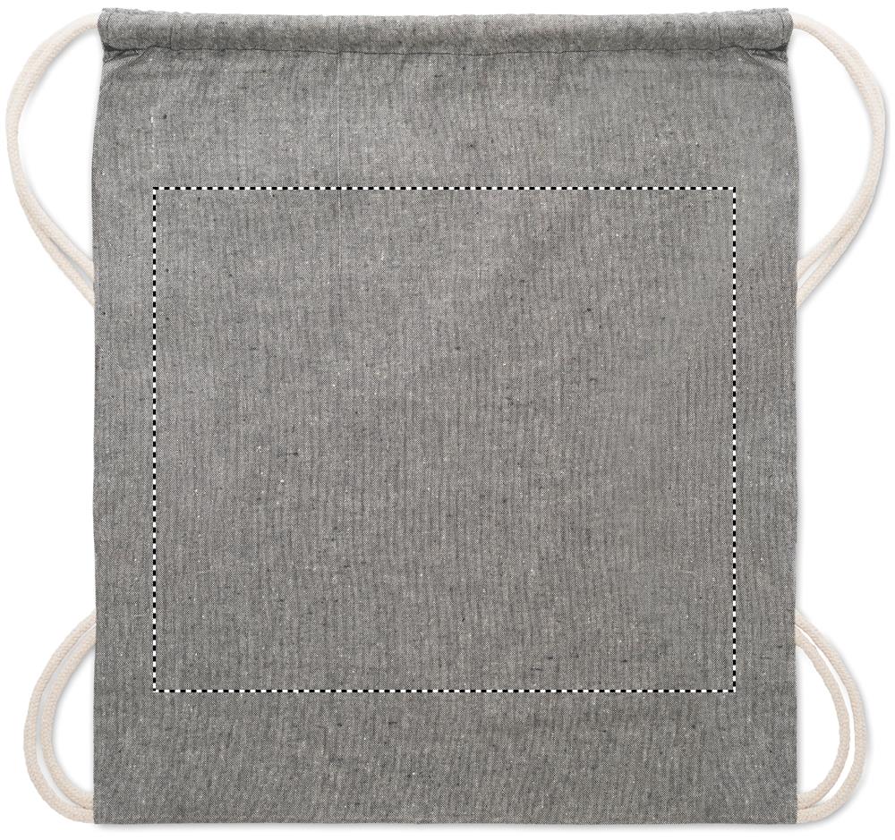 Pingutusnööriga kott taaskasutatud puuvillast (80% taaskasutatud puuvill, 20% tavaline puuvill). 140 gr/m².