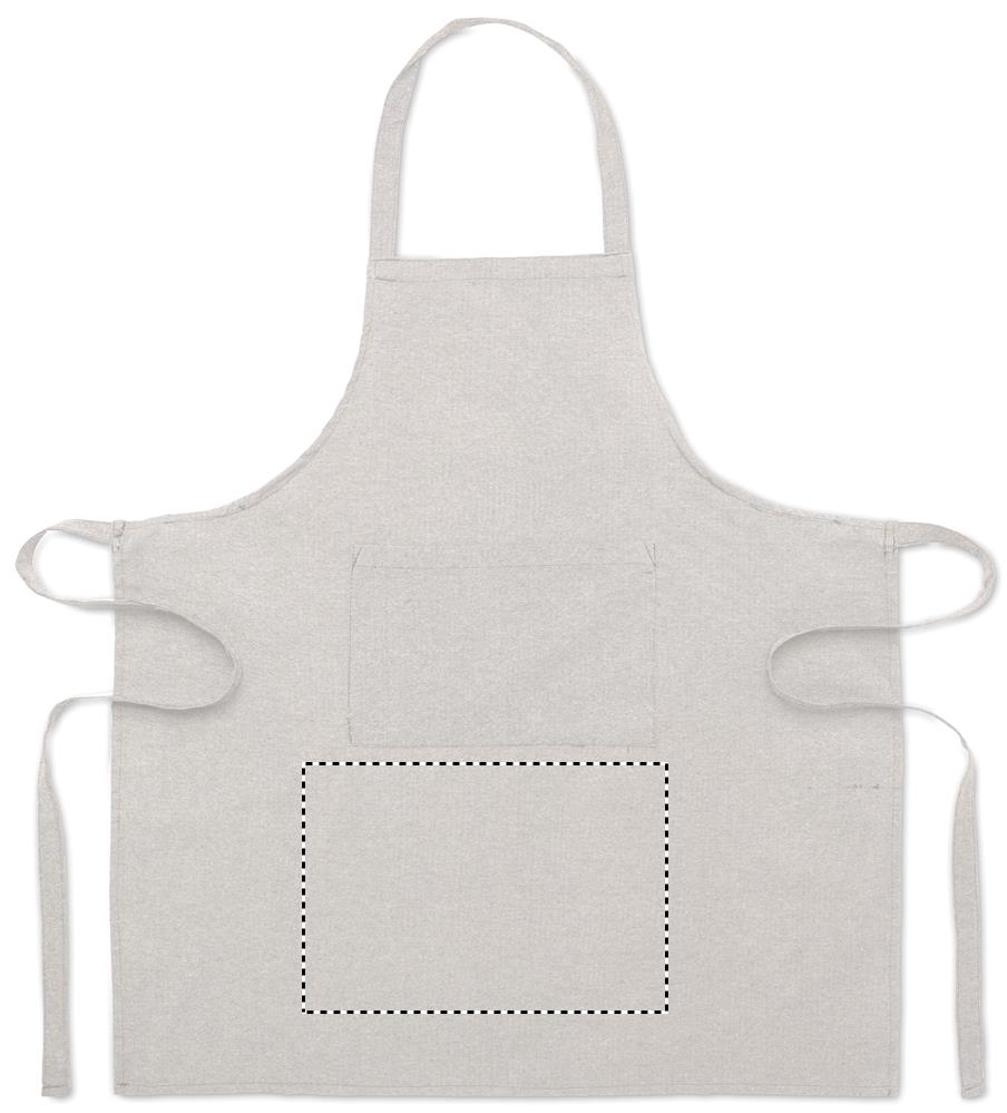 Reguleeritav köögipõll 1 esitaskuga 220 gr/m² taaskasutatud puuvillast. 80% taaskasutatud puuvill, 20% tavaline puuvill.