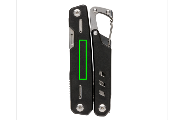 Tugev ja vastupidav 11 funktsiooniga multitööriist. Alumiiniumist korpuse ja roostevabast terasest tööriistadega. Tööriistade hulka kuuluvad: nõelotang, tavaline tang, traadilõikurid, nuga, ristikruvikeeraja, lamekruvikeeraja, saag, konserviavaja, pudeliavaja, traadieemaldaja, karabiin. Pakitud kinkekarpi.