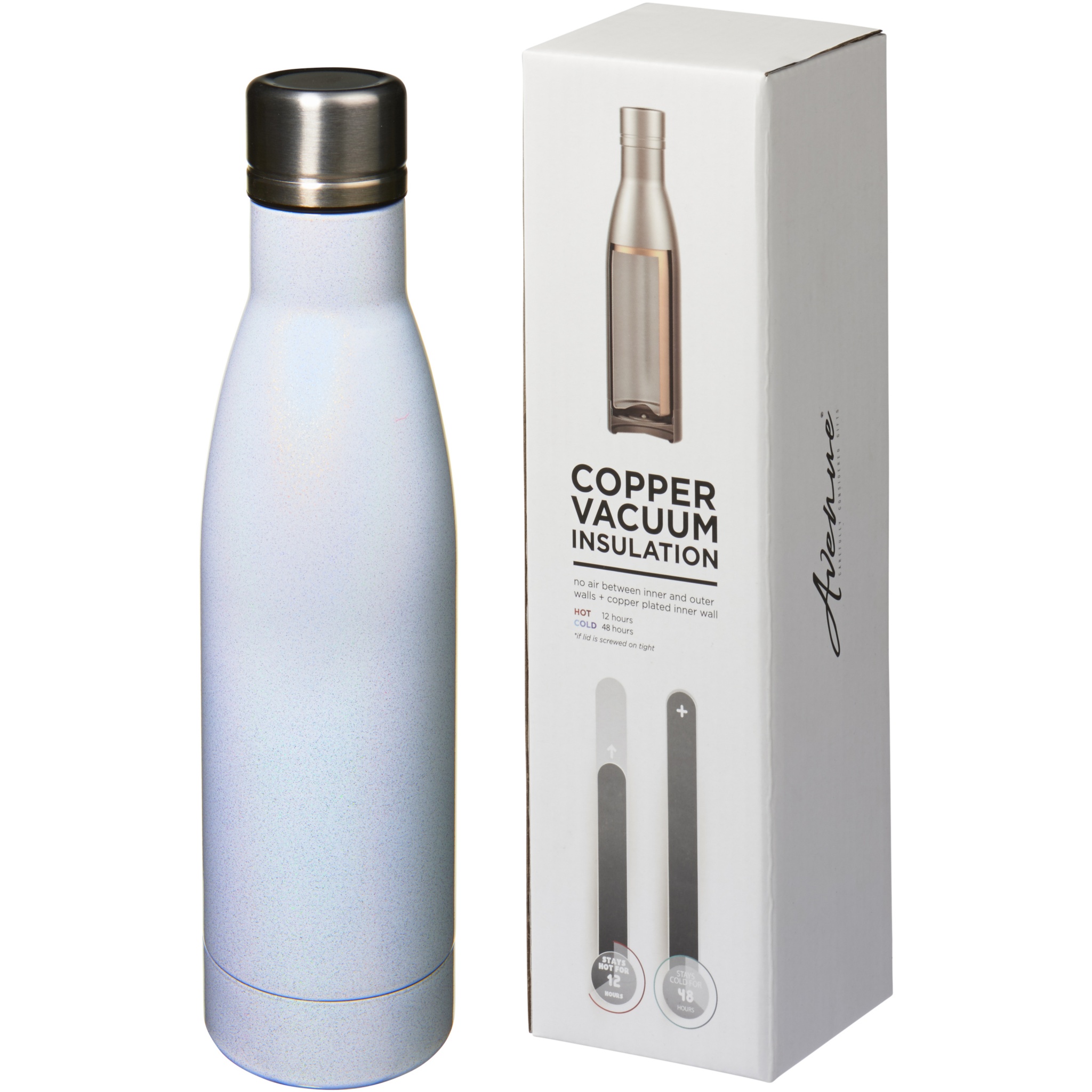 Vasa Aurora vasest vaakum-isolatsioonipudeliga hoidke oma jooke kuumana 12 tundi või külmana 48 tundi. Kahekordse seinaga ja roostevabast terasest valmistatud veepudel vaakum-isolatsiooni ja vasega kaetud siseseinaga, mis tähendab, et teie jook hoitakse vastavalt teie vajadustele kuuma või jääkülma. Pudel on psühhedeelse ja sillerdava viimistlusega. BPA-vaba ning testitud ja heaks kiidetud Saksamaa toiduohutuse seadusandluse (LFGB) alusel ning ftalaatide sisalduse jaoks REACH-määruse alusel. Maht: 500 ml. Tarnitakse kinkekarbis.