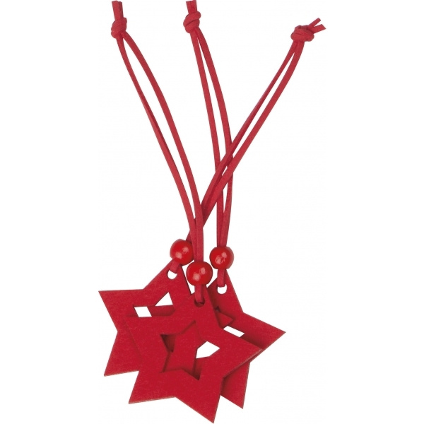 Kolm punasest vildist tähte, nööri ja puidust helmega, dekoratiivne kaunistus mitte ainult jõuluhooajal.