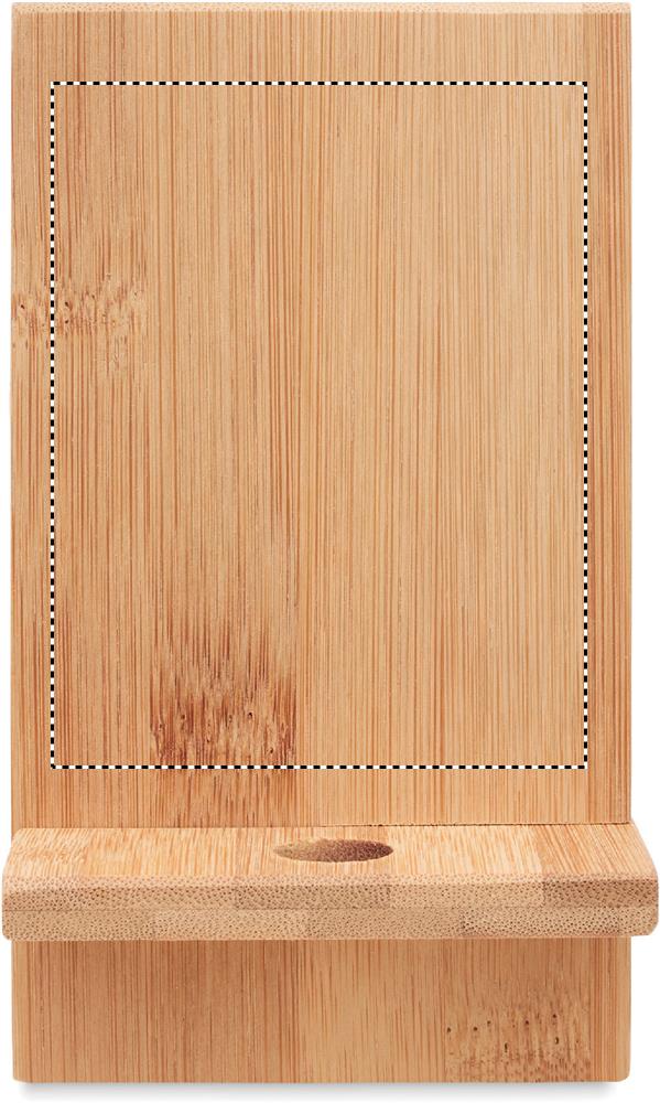 Bambusta valmistettu puhelinalusta, tuote koostu kahdesta osasta. Luonnollisen materiaalin (bambu) vuoksi, tuotteiden värissä/ koossa saattaa olla erinäisyyksiä ja tämä voi vaikuttaa painatuksen lopputulokseen.