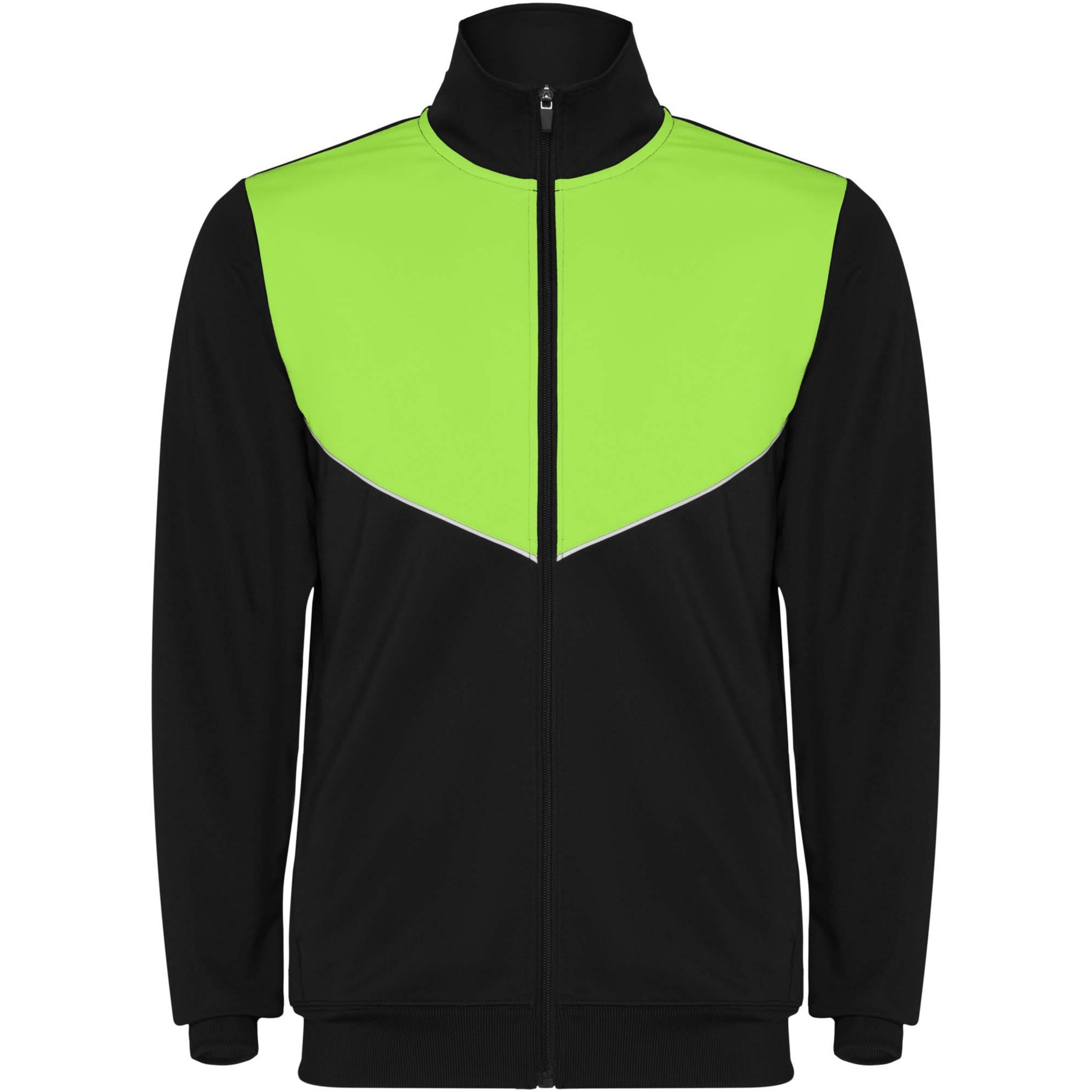 Verryttelyasu kevyestä ja joustavasta kankaasta. Takki kontrastiväreillä ja ommelreunoilla rinnassa. Korkea kaulus kontrastivärisillä saumoilla. Vetoketju keskellä edessä. Sivutaskut. 2x2-resori hihansuissa ja vyötäröllä. Housut joustavalla vyötäröllä ja kiristysnyörillä. Kontrastivärinen sivukappale ommelreunuksella. Vetoketjut lahkeissa.