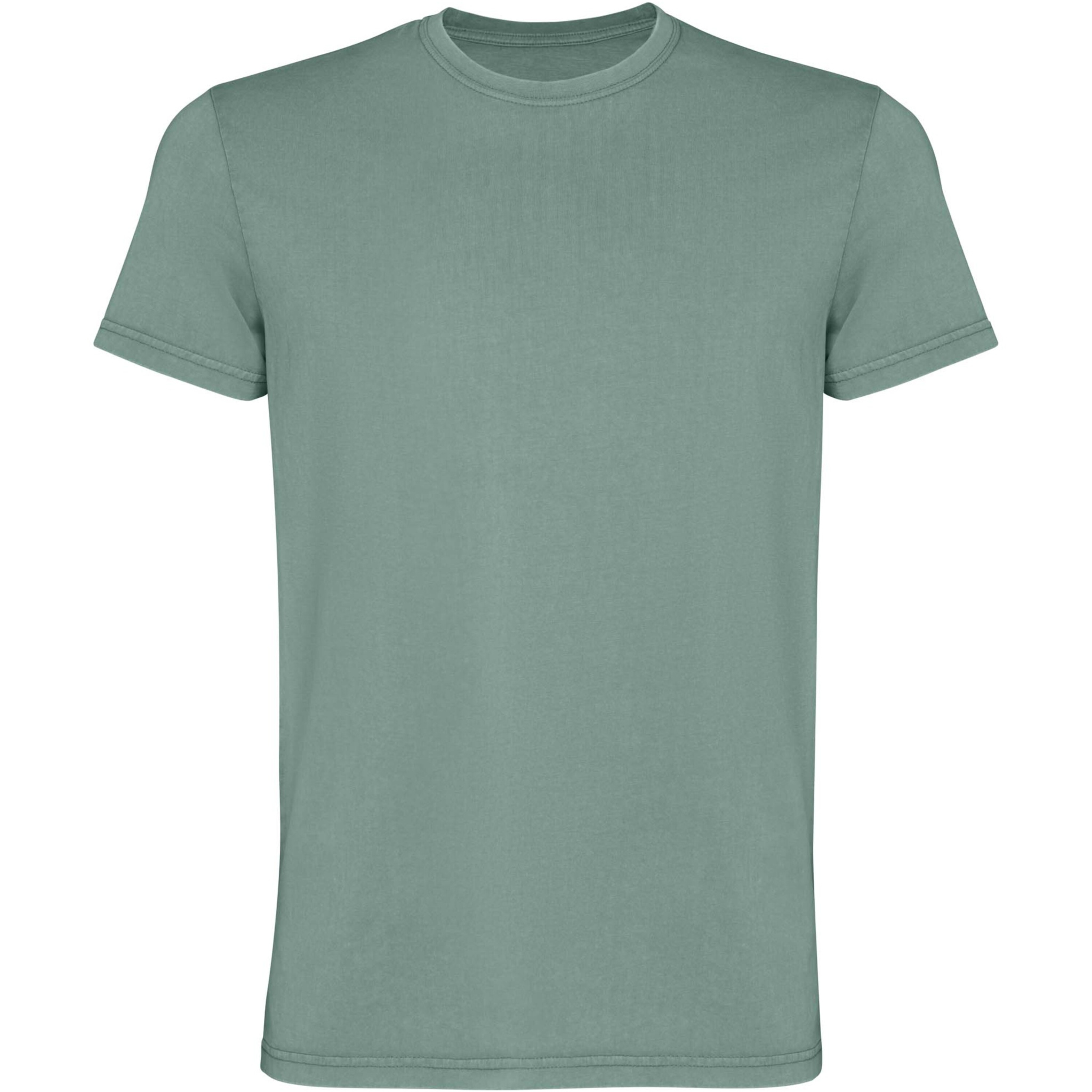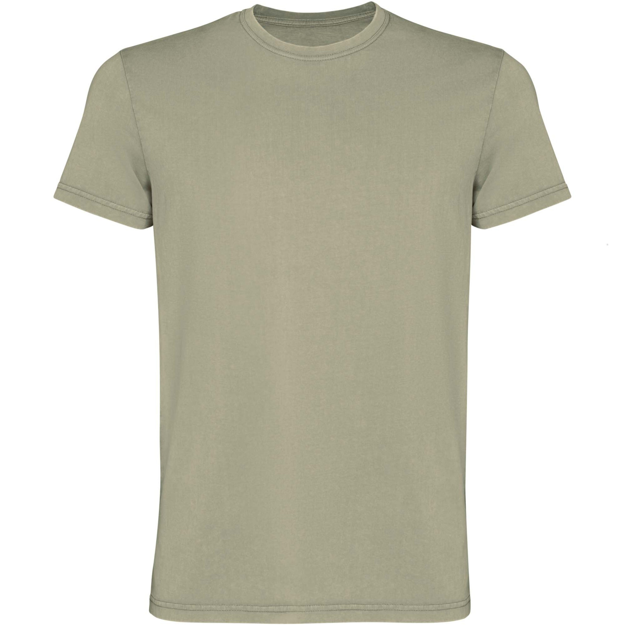 Miesten lyhythihainen t-paita. Happopesuviimeistely. 1 x 1 -uurrettu pyöreä pääntie. Sävy sävyyn -peittotikkaus hienostuneella viimeistelyllä.
