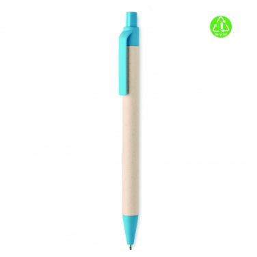 Kuulakärkikynä, jonka runko on valmistettu kierrätyskartongista (70% maitopurkeista tehtyä kartonkia ja 30% kierrätyspaperia) ja PLA-osat 100 % biohajoavasta maissista. Sininen muste.