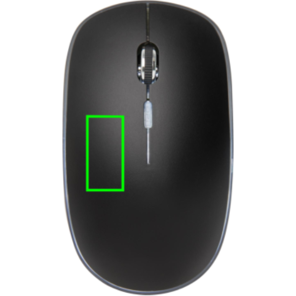 Uudelleenladattava langaton hiiri light up logo -ominaisuudella, joka antaa logollesi lisänäkyvyyttä. Hiiressä on uudelleenladattava 300 mAh litiumpolyakku, joka on ladattavissa kolmessa tunnissa. Liitäntänopeus 125 HZ mukana toimitetulla helposti asennattavalla USB-sovittimella. Varustettu vasemmalla ja oikella hiiren painikkeilla sekä keskimmäisellä vieritys-/napsautuspainikkeella. Hiiren herkkyyttä voidaan helposti muuttaa omien mieltymystesi mukaan. Yhteensopiva kaikkien nykyisten Windows- ja Mac-käyttöjärjestelmien kanssa.