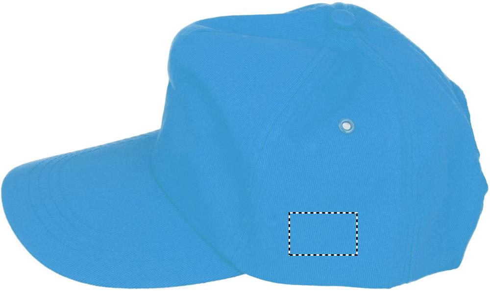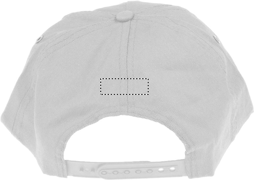 Toimikkaasta puuvillasta valmistettu viisi paneelinen lippalakki, muovinen säädettävä snapback kiinnitys takana. Kahdella metallisella ilmareiällä, reiät on sovitettu sopimaan tuotteen väriin. Koko 7 1/4.
