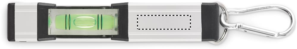 Minimagneettinen kaksoisvesivaaka alumiinikotelossa karabiinihaarukalla. Karabiini ei ole kiipeilyyn (ei-ammattikäyttöön).