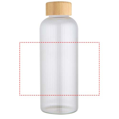 Borosilikaattilasista valmistettu pullo, jossa on bambuinen kansi. Pullossa on ainutlaatuinen, uurrettu sisäpinta ja sileä ulkopinta, joka sopii erinomaisesti logon painattamiseen. Korkkiin käytetty bambu on hankittu kestävästi, ympäristö- ja sosiaalinen vastuu huomioiden. Toimitetaan kierrätetystä kartongista valmistetussa lahjapakkauksessa. Tilavuus: 650 ml.