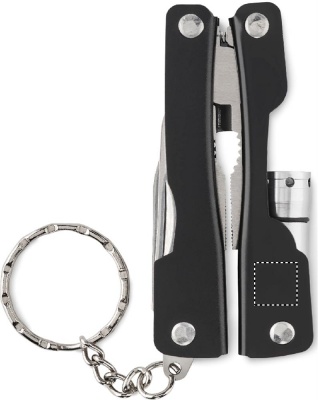 Kokoontaitettava monitoimiveitsi ruostumatonta terästä. Sisältää taskulampun ja 10 työkalutoimintoa sekä 600D-polyesteripussin. Sisältää 3 x AG3-nappiparistoa.