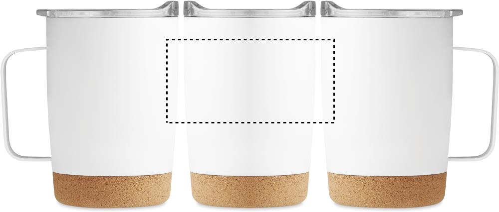 Kaksiseinämäinen ruostumattomasta teräksestä valmistettu 300 ml juomamuki, korkkipohjalla ja liukuva sip-reiän kansi.