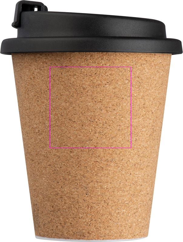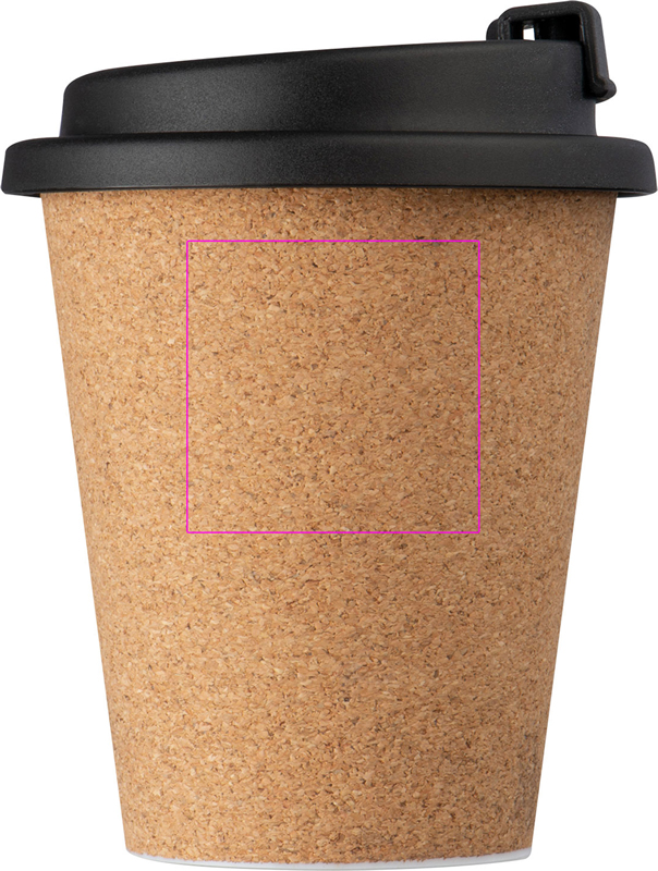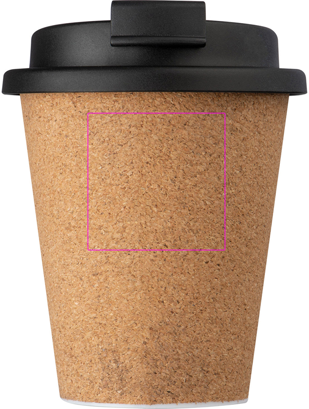 Vuotamaton juomamuki korkkipinnoitteella, lukittava suukappale ja tilavuus 350 ml. Logosi kaiverretaan mukiin.