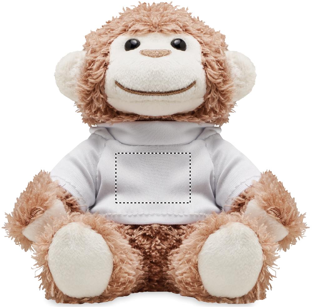 Apina pehmolelu, jolla on hupullinen paita. Ihanteellinen sublimaatiopainatusta varten.