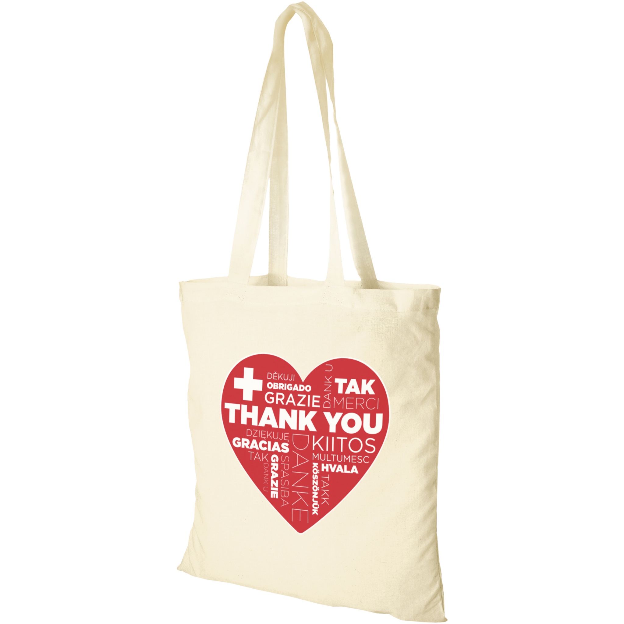 Vahva ja kestävä 180 g/m² puuvillaa oleva kassi, joka on tilava. Painoala takaa maksimaalisen näkyvyyden mille tahansa logolle. Tukevan puuvillamateriaalin ansiosta se soveltuu raskaampien tavaroiden kuljettamiseen. Kädensijat ovat 30 cm pitkät, joten ne ovat riittävän pitkät kassin kantamiseen myös olalla. Kantokyky 5 kg.
