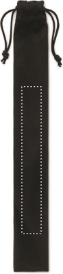 Ruostumattomasta teräksestä valmistettua pilli ja puhdistusharja mikrokuitupussissa.
