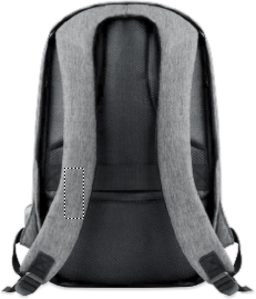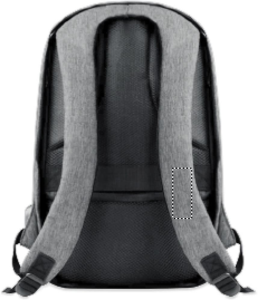 600D- 2 sävyinen polyesterireppu, pehmustetuilla olkahihnoilla. Sisältää yhden 13 tuuman kannettavan tietokoneen taskun ja USB-latauskaapelin. Vetoketjullinen tasku repun selkäosassa.