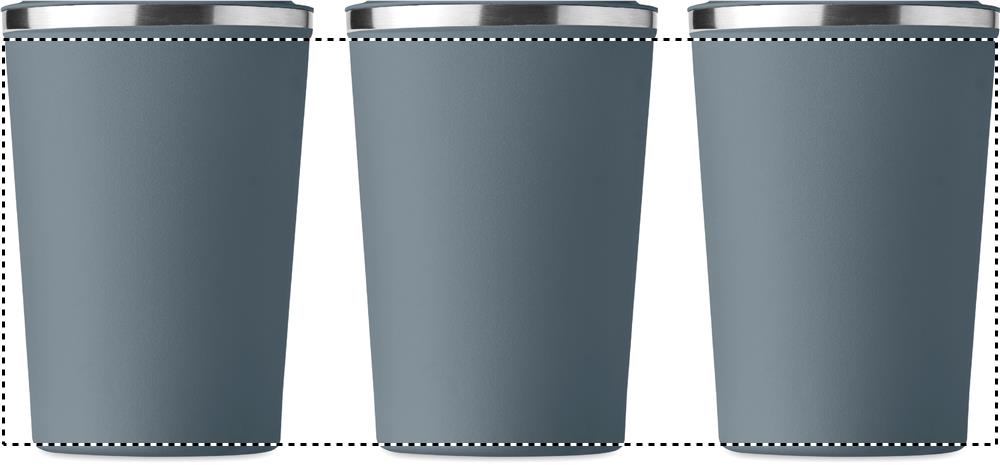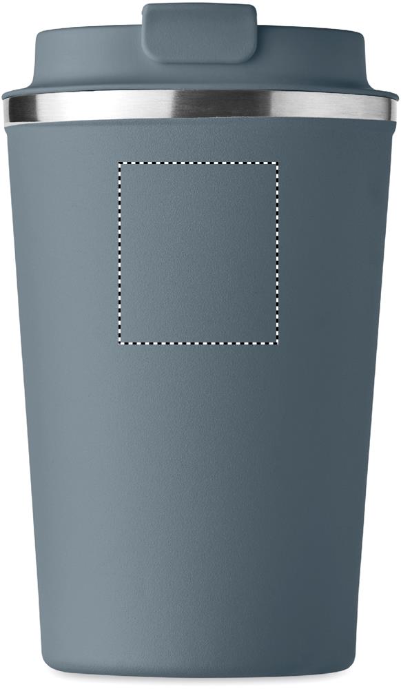 Kaksiseinäinen 350 ml ruostumattomasta teräksestä valmistettu takeaway muki, PP kannella.Tuote on vuoto vapaa.