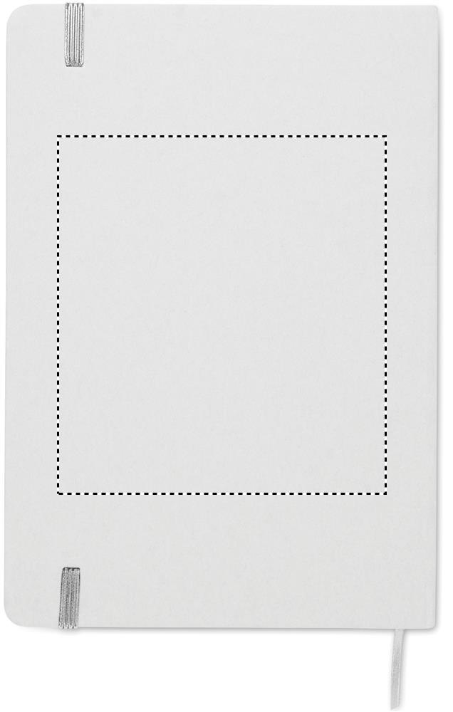 A5-kokoinen muistikirja kovalla kierrätetyllä kartongilla. Valkoinen kansi. Casebound. 160 rivillistä kierrätyspaperisivua (80 arkkia). Joustava sulkuhihna, kirjanmerkki nauha, joka sopii yhteen paljastetun värin kanssa. Laserkaiverruksen jälkeen väri paljastuu.