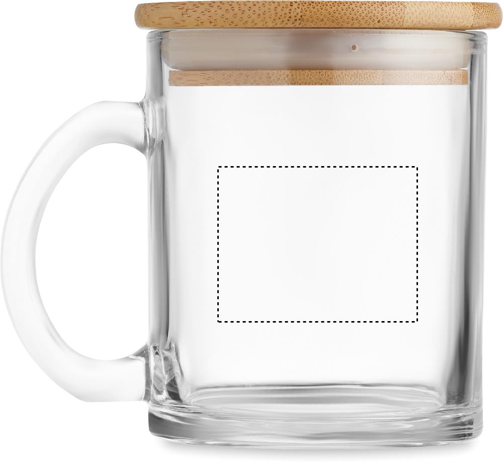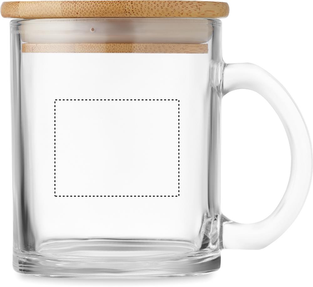 Perdirbto stiklo puodelis su bambuko dangteliu. Talpa: 300 ml. Bambukas yra natūralus produktas, gali šiek tiek skirtis kiekvieno gaminio spalva ir dydis, o tai gali turėti įtakos galutiniam dekoravimo rezultatui.