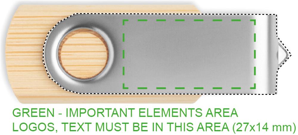 16 GB USB 2.0 atmintinė su bambuko korpusu ir apsauginiu metaliniu dangteliu. Pasukite dangtelį ir prijunkite prie USB prievado, kad pradėtumėte juo naudotis. Bambukas yra natūralus produktas, gali šiek tiek skirtis kiekvieno gaminio spalva ir dydis, o tai gali turėti įtakos galutiniam dekoravimo rezultatui.