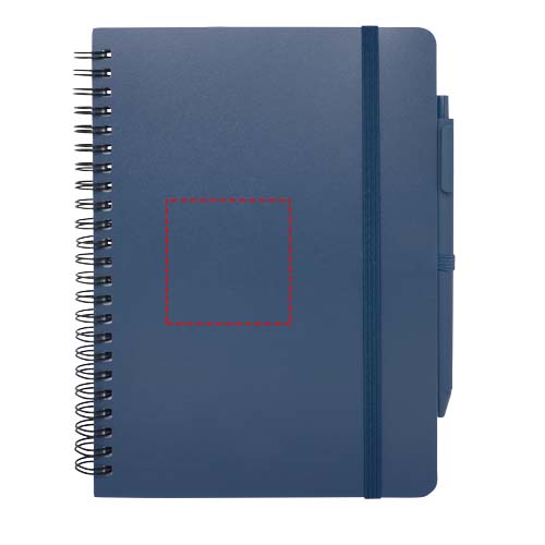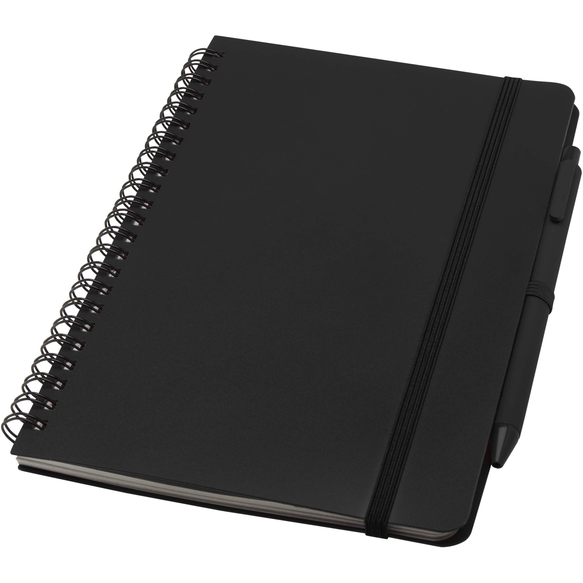 Thalaasa A5 cieto vāku piezīmjdators ir izgatavots no okeānā pielīmētas otrreizējās pārstrādes plastmasas ar 80 izklātām 70 g/m² krēmkrāsas papīra loksnēm. Piezīmju grāmatiņai ir noapaļoti stūri, elastīgs aizdare un pildspalvas cilpa. Lodīšu pildspalva ar melnu tinti ir izgatavota arī no okeānā saistītas pārstrādātas plastmasas. Rakstīšanas garums: 1000 metri. Uzgaļa izmērs: 1,0 mm.