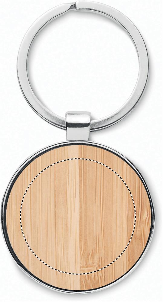 Брелок круглый из цинкового сплава с бамбуком. Бамбук является натуральным продуктом, могут быть небольшие различия в цвете