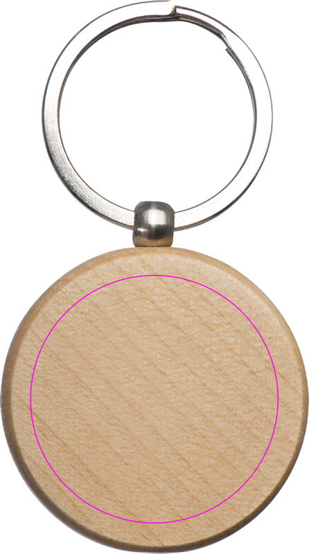 Круглый брелок из бука с кольцом для ключей. Благодаря лазерной гравировке ваш логотип идеально выступит на передний план.