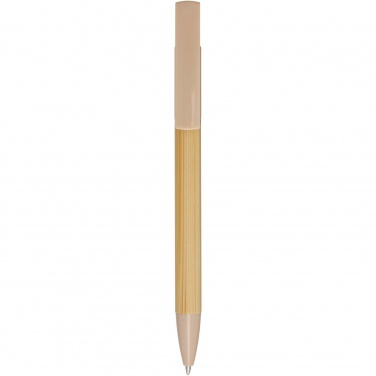 Бамбуковая шариковая ручка, которая также может служить подставкой для телефона. Кнопка и среднее кольцо изготовлены из переработанного пластика, наконечник — из латуни, а корпус — из бамбука, полученного из ответственных источников. Цвет чернил: черный. Длина непрерывной линии: 1000 метров. Размер пера: 1,0 мм.