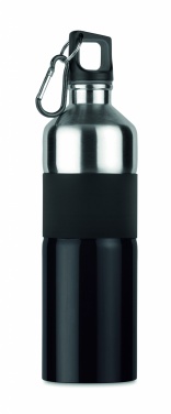 Фляга питьевая двухцветная из нержавеющей стали с резиновым обхватом и карабином. Объем 750 мл. Не протекает.
