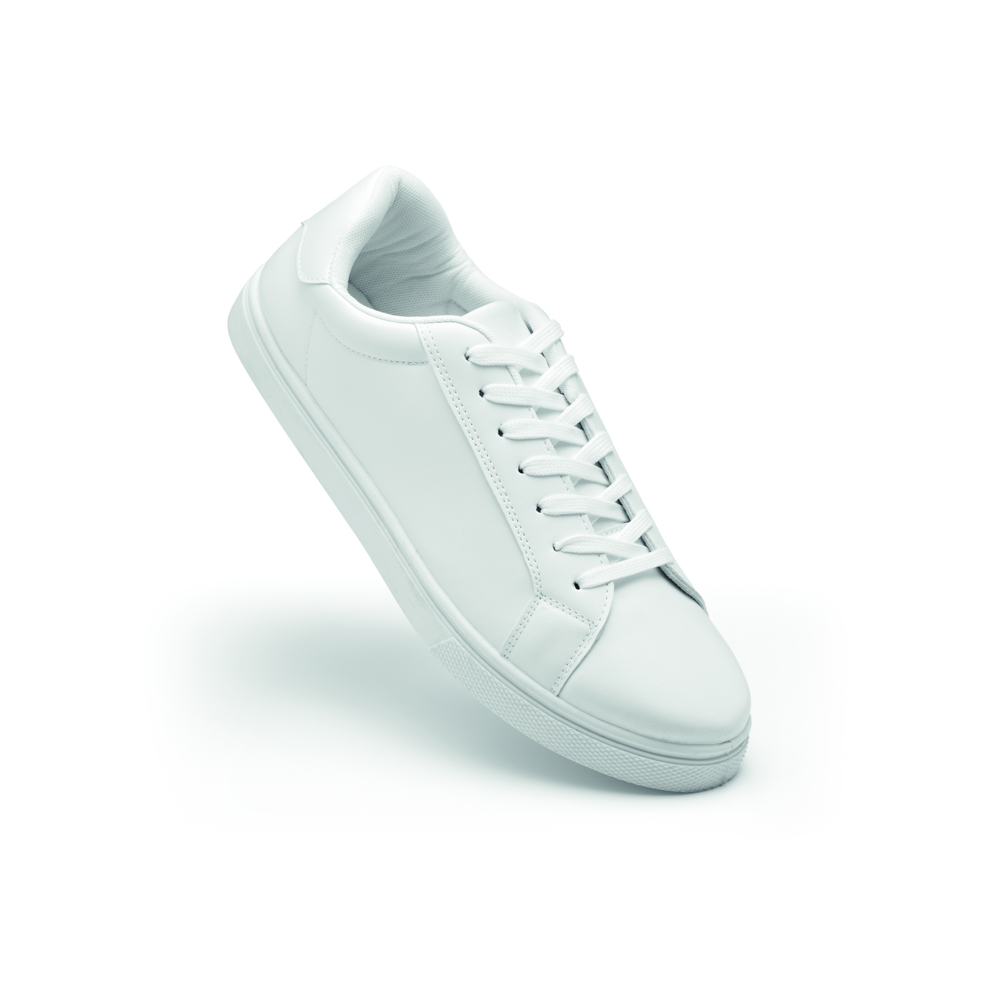 Легкие кроссовки из полиуретана с резиновой подошвой и шнурками из полиэстера. Размер: 45. Поставляются в белой коробке для обуви.