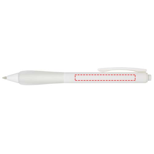 Шариковая ручка из переработанного пластика с прорезиненным корпусом и рукояткой из TPR. Цвет чернил: черный. Длина непрерывной линии: 1000 метров. Размер пера: 1,0 мм.