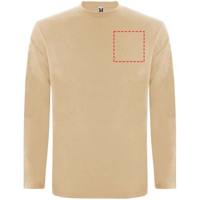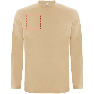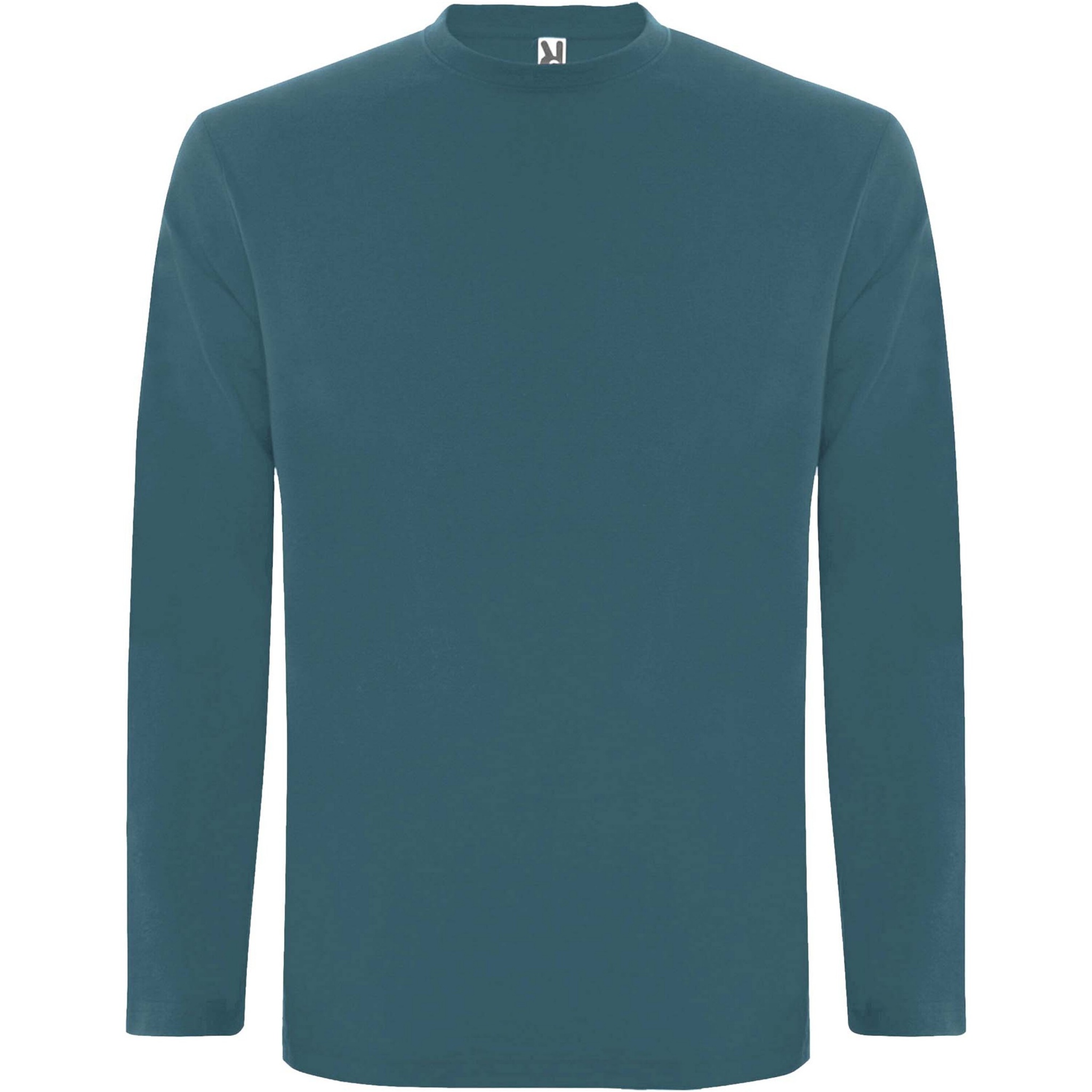 Футболка из трубчатой ткани с длинными рукавами и с четырехслойной круглой горловиной. Усиленные закрытые швы горловины и на плечах. Без манжет. Съемная этикетка. Трубчатая модель для взрослых размеров и боковые швы для детских размеров.