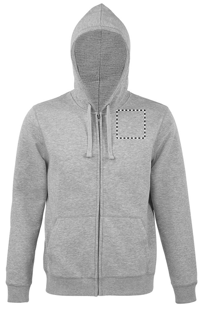 SOL'S SPIKE MEN. Мужская толстовка с капюшоном на молнии, 80% хлопка кольцевого прядения - 20% полиэстера. Подкладка с начесом. Снаружи: 100% хлопок, ФЛИС 280 LSF (ткань с низкой усадкой). Втачные рукава, 2 передних кармана-кенгуру. Скроено и прошито. Капюшон на подкладке с утягивающим шнурком в тон, 2x2 ребристые манжеты и подол. Полукруглый внутренний воротник, проклеенная горловина, молния YKK. OEKO-TEX®. Продается только с принтом.