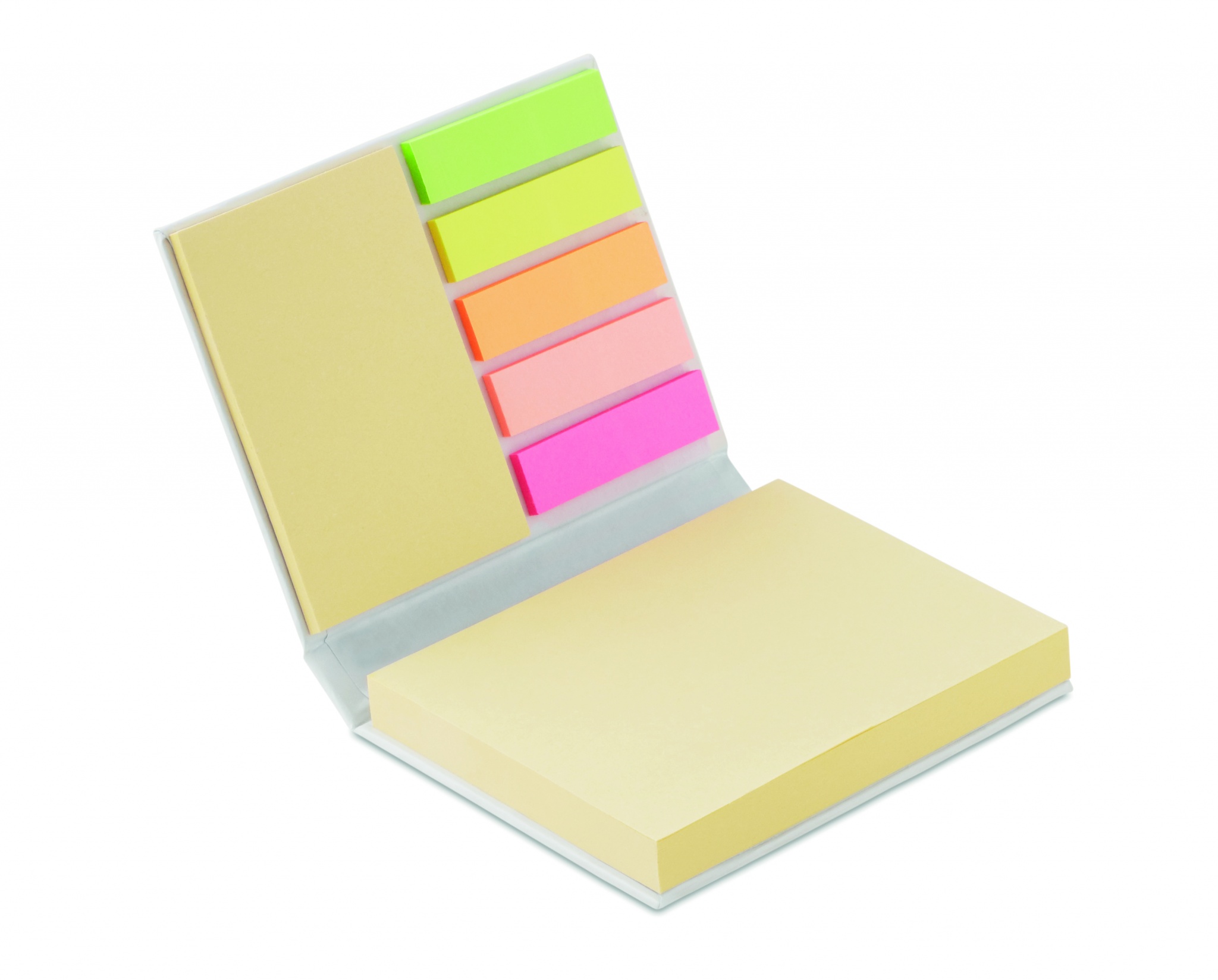 Набор из 5 элементов, включающий большие и средние желтые блоки для заметок и маленькие яркие закладки.