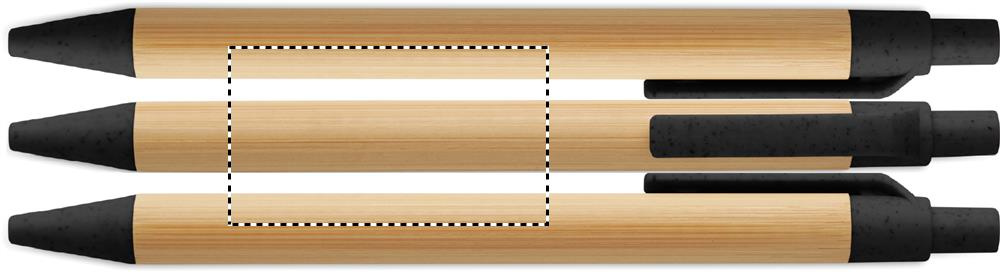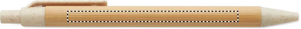 Push button ball pen with bamboo barrel and wheat straw (50%) and ABS plastic (50%) fittings. Blue ink.