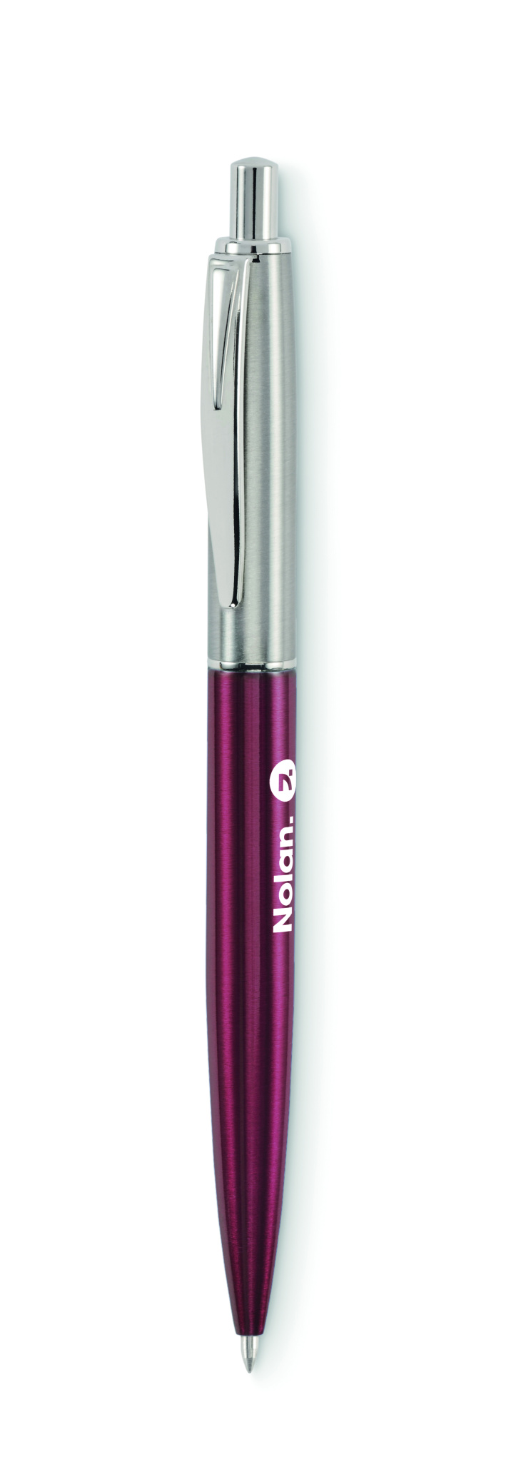 Push button ball pen in recycled stainless steel barrel. Blue ink. Presented in gift box.