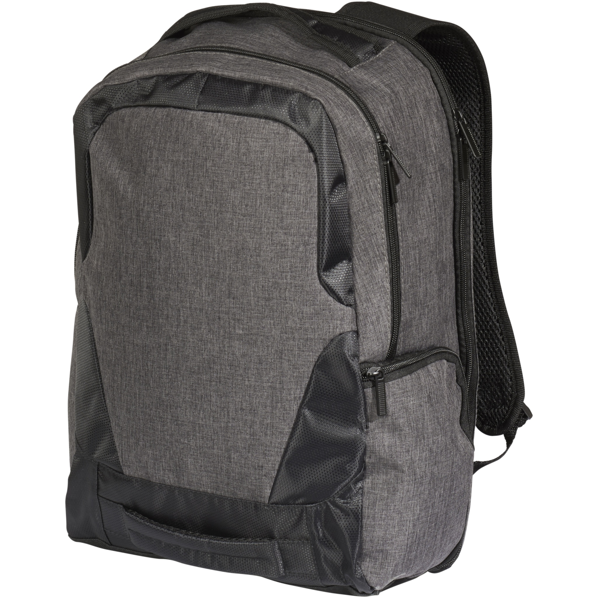 Тонкий рюкзак 17" для ноутбука с разъемом USB и кабелем. Оснащен RFID-защитой в боковом кармане, дополнительными карманами на молнии и ремнем для крепления к чемодану на колесах. Верхняя и передняя ручки и мягкие плечевые ремни удобны в использовании. Реальный цвет рюкзака может незначительно отличаться в зависимости от особенностей принта, окраски и структуры ткани.