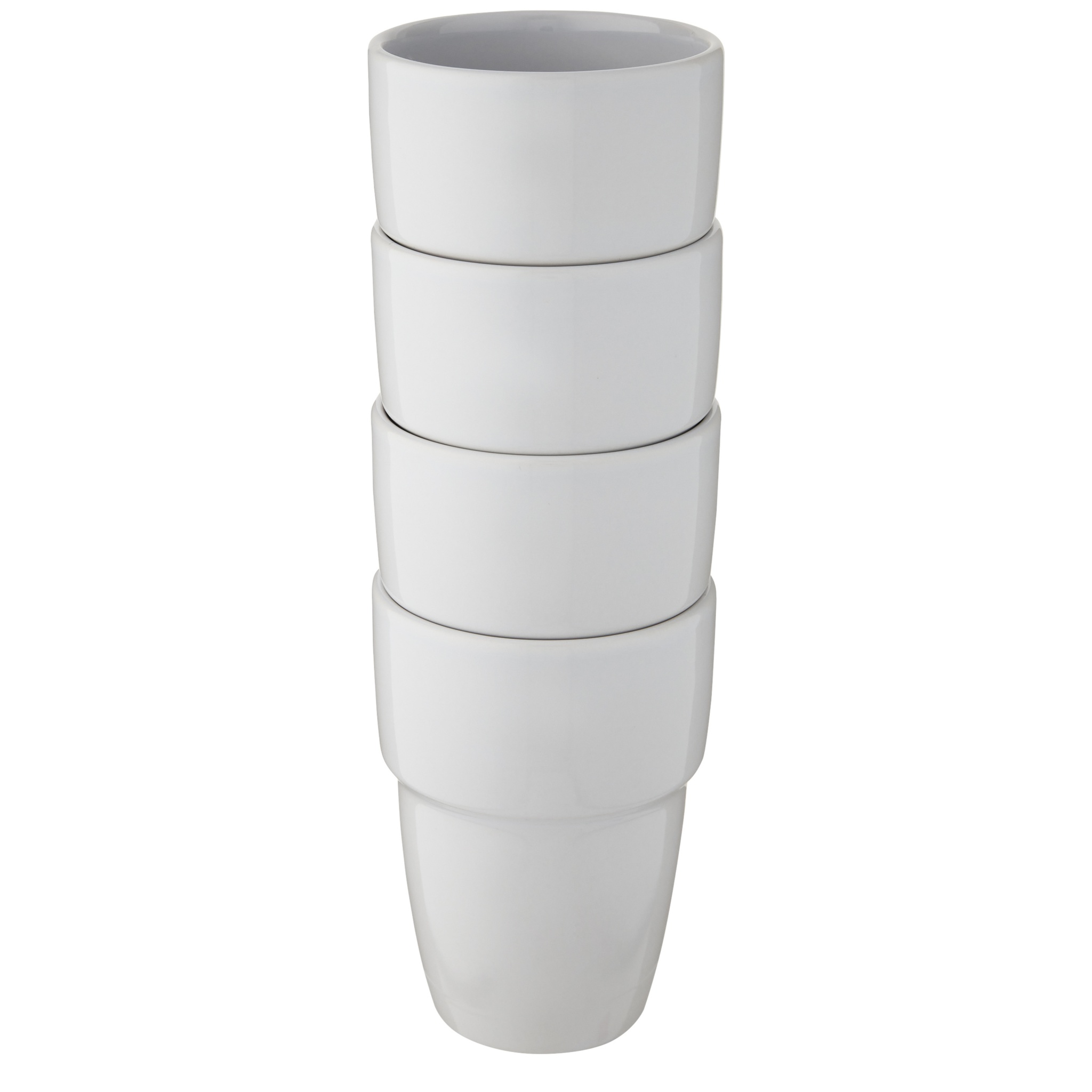 Подарочный набор из четырех керамических кружек, которые можно ставить друг на друга, за счет чего они занимают мало места и имеют аккуратный вид в офисе или дома. Объем 280 мл. Можно мыть в посудомоечной машине независимо от методов нанесения печати. В подарочной коробке из переработанного картона.