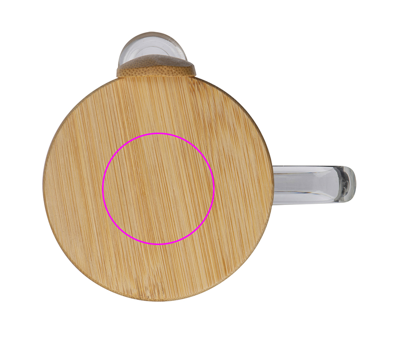 Кружка из боросиликатного стекла с закрывающейся бамбуковой крышкой, встроенной бамбуковой ложкой и емкостью 420 мл. Ваш логотип будет выгравирован на крышке.