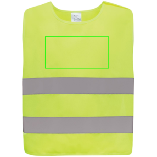 Жилет повышенной видимости размера S, предназначенный для детей в возрасте от 7 до 12 лет, подходит для людей ростом от 90 до 155 см. Этот жилет предлагает большую площадь поверхности для украшения, как спереди, так и сзади. Он оснащен застежками-липучками на плечах и в основании, что обеспечивает дополнительную безопасность и облегчает надевание жилета. Противоположные эластичные ленты обеспечивают растяжимость, что позволяет удобно носить даже поверх объемных пальто. Этот жилет прошел испытания и соответствует стандарту EN 17353:2020 Тип AB3. Кроме того, он соответствует рекомендациям по СИЗ, изложенным в Регламенте (ЕС) 2016/425 для средств индивидуальной защиты категории II. Изготовлен из сертифицированного GRS переработанного ПЭТ. Общее содержание переработанных материалов: 58% от общего веса изделия. Сертификация GRS гарантирует полностью сертифицированную цепочку поставок переработанных материалов.