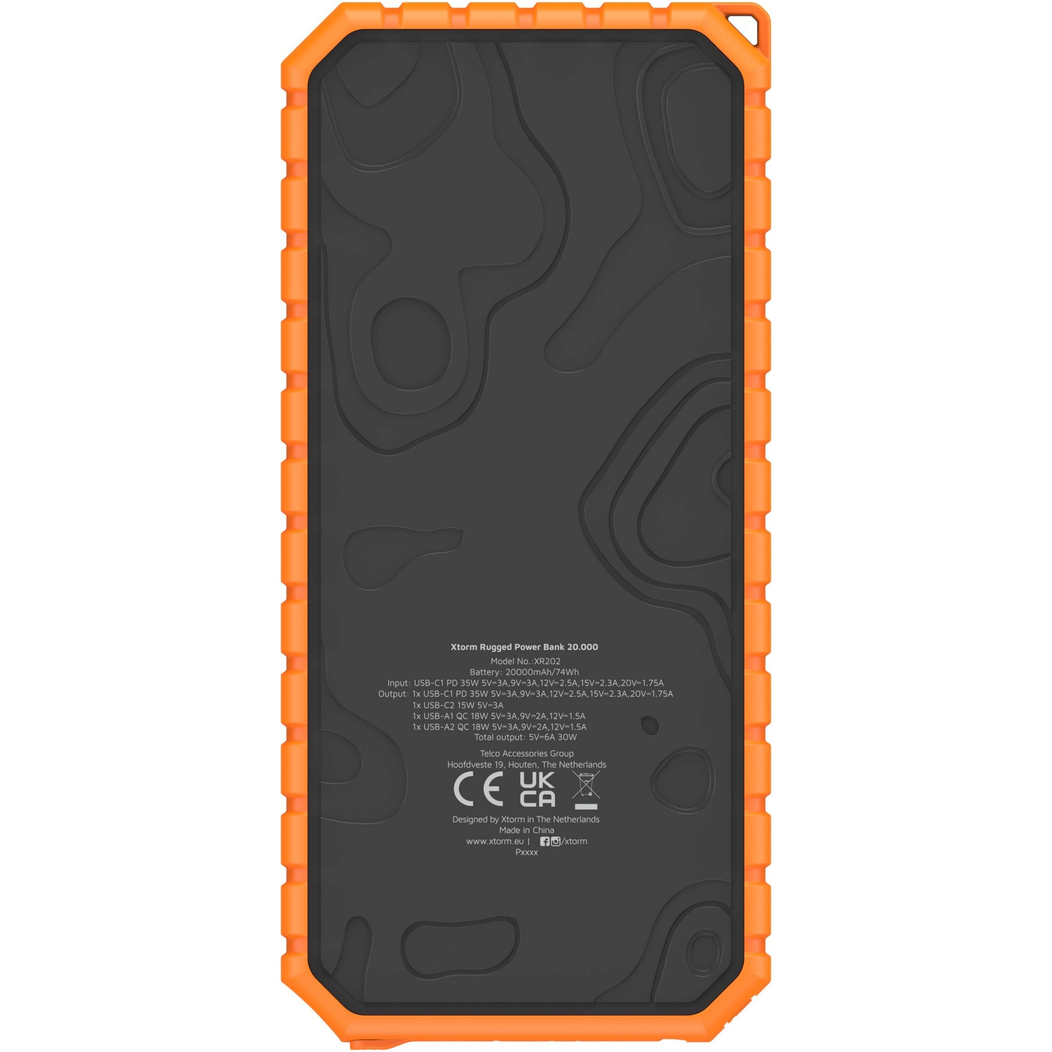 Прочное портативное зарядное устройство XR202 емкостью 20 000 мАч — это идеальный гаджет для выживания, который поможет вам продолжать работу во время приключений на свежем воздухе. Позволяет быстро заряжать до 4 устройств одновременно. Оно также оснащено встроенным фонариком. Водозащита по стандарту IPX65. Выходная мощность: 2 порта USB-A для быстрой зарядки и подача питания через USB-C мощностью 35 Вт. В комплект поставки входит кабель USB-C - USB-C PD и руководство пользователя.