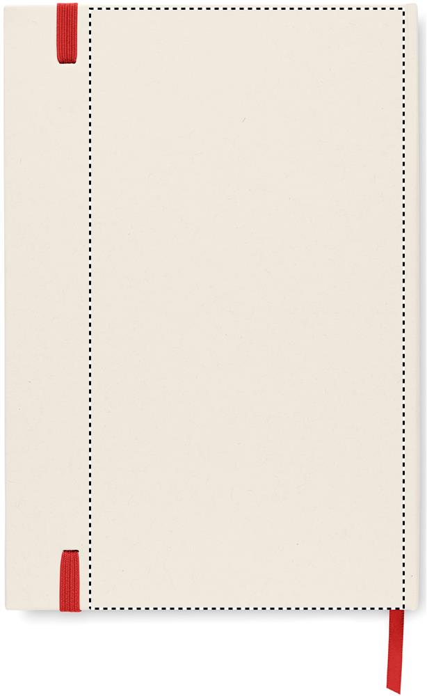 A5 Anteckningsbok med hårt omslag och 160 linjerade sidor (80 ark 80 gsm) tillverkad av 70 % återvunnen mjölkkartong och 30 % återvunnet papper. Inbunden. Elastiskt band, bokmärks band.