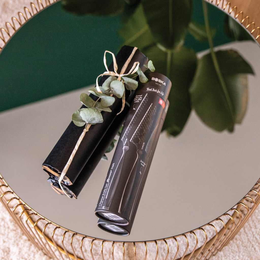 Från mjuk brie till hård parmesan, ostknivsetet Monaco+ Black från BOSKA - ett B Corporation-certifierat företag - erbjuder den perfekta skärlösningen för alla typer av ost. Dessa unika non-stick-knivar i rostfritt stål, kompletta med ett fodral i äkta läder, är en perfekt och elegant present till äkta ostälskare och matlagningsentusiaster. Denna uppsättning är kylskåpssäker, endast handtvättad och omfattas av en 10-årsgaranti.