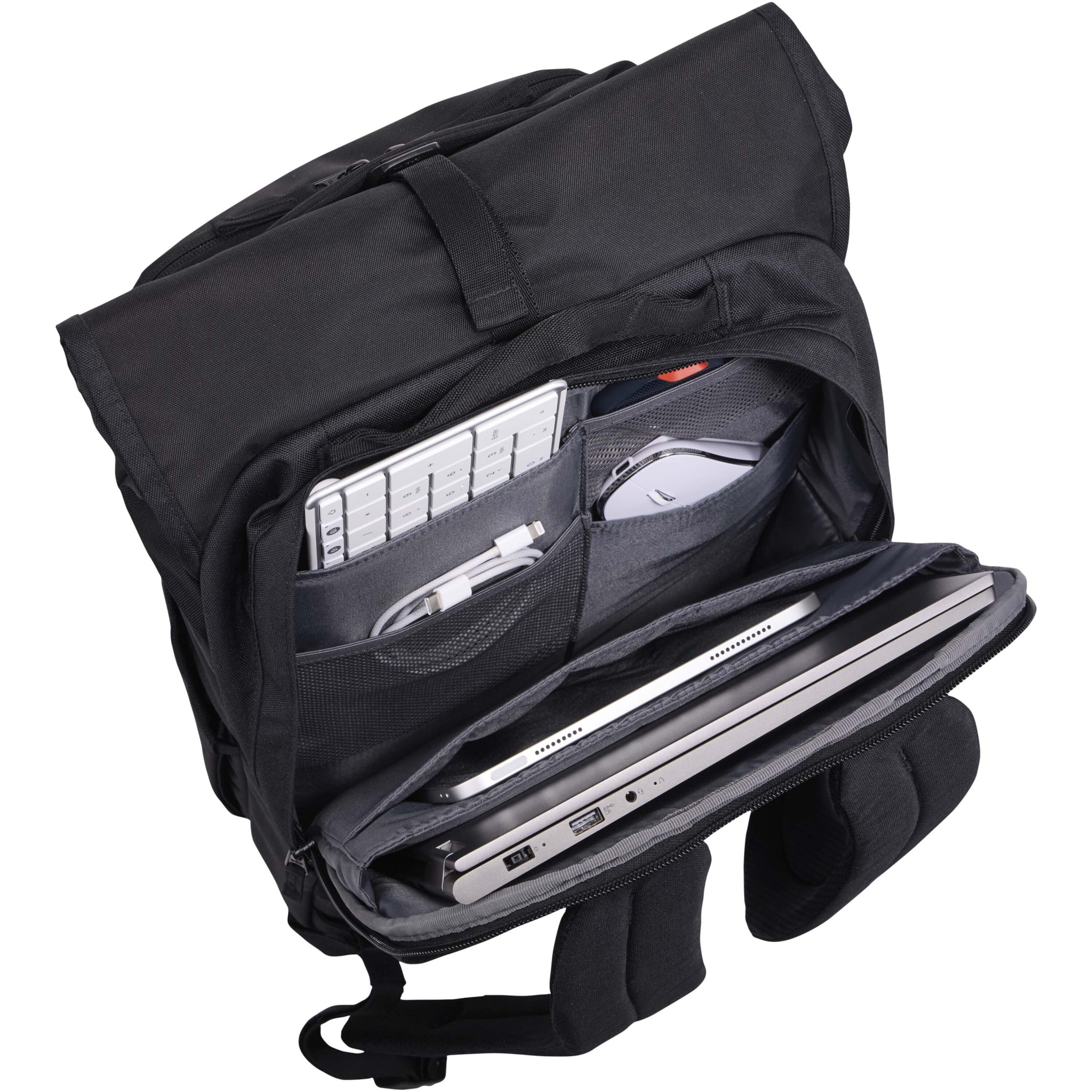 17 tums laptopväskan Case Logic Variate är en elegant och mångsidig följeslagare på arbete, resor och allt däremellan. Rullöppningen gör att den kan utökas från 28 till 33 liter och erbjuder flexibel förvaring med ett modernt utseende. Tillverkad av 85 viktprocent återvunnet material, inklusive skal, foder och nät av 100 % återvunnen polyester, och med en PFAS-fri, hållbar vattenavvisande beläggning. Inuti finns ett särskilt fack för en bärbar dator på upp till 17 tum, med plats för en surfplatta, tangentbord, mus och andra viktiga saker. En avtagbar organiseringspåse håller små tillbehör på ett ställe och kan enkelt flyttas mellan hem och kontor. På utsidan finns två utdragbara sidofickor som ger snabb åtkomst till vattenflaskor eller paraplyer. Ryggsäcken är designad för vardagskomfort och har en ventilerande, vadderad ryggpanel och axelremmar samt en genomgående rem för enkel fastsättning på rullande bagage.