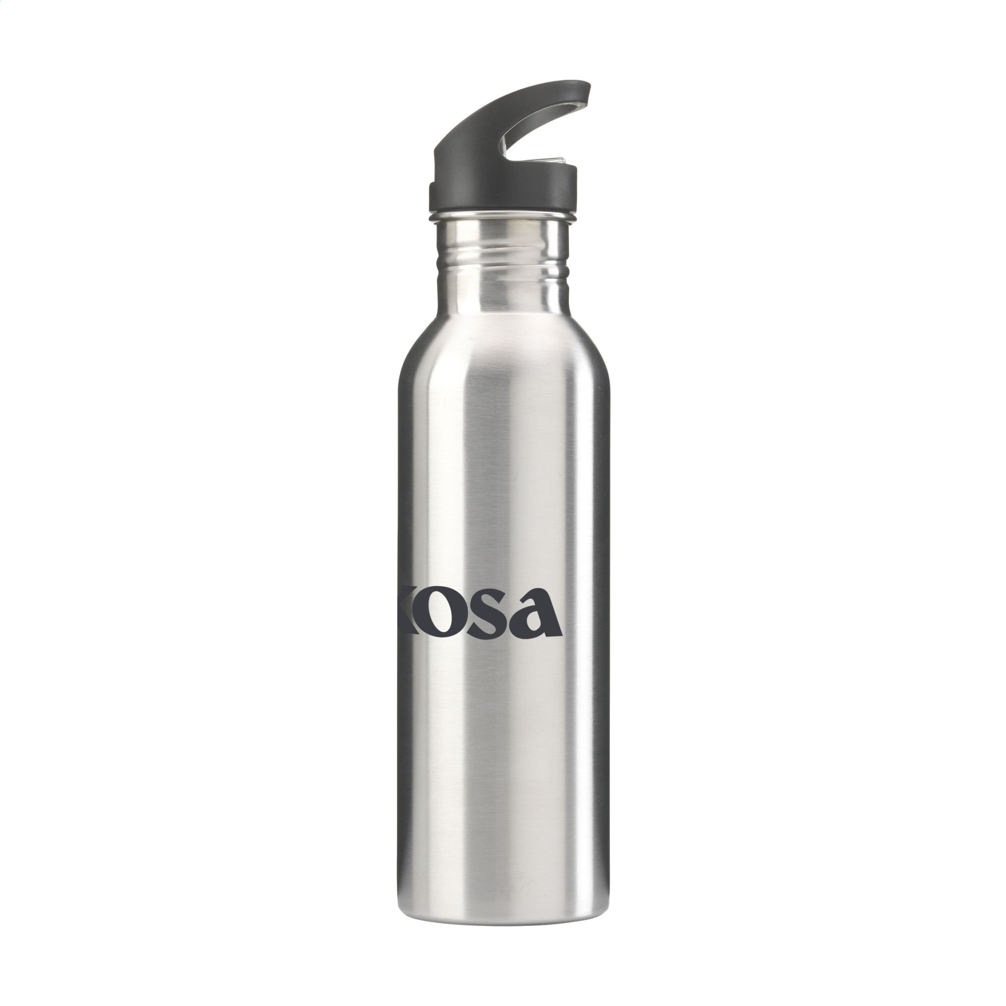 WoW! Lätt, enkelväggig vattenflaska gjord av återvunnet rostfritt stål. Med en läcksäker PP-skruvkork, en hopfällbar munpip och ett sugrör. Praktisk under sport när du dricker i bilen. Då flaskan inte behöver lutas när du dricker – kan du hålla ögonen på vägen. Denna praktiska dricksflaska är ett utmärkt alternativ till engångsvattenflaskan. BPA-fri. RCS-certifierad. Totalt återvunnet material: 77%. Kapacitet 750 ml. Rostfritt stål kan återvinnas ett oändligt antal gånger med bibehållen kvalitet på materialet. Genom att använda återvunnet rostfritt stål behövs färre nya råvaror. Det innebär mindre energiförbrukning, mindre användning av vatten och minskade CO2-utsläpp. Ett ansvarsfullt val.