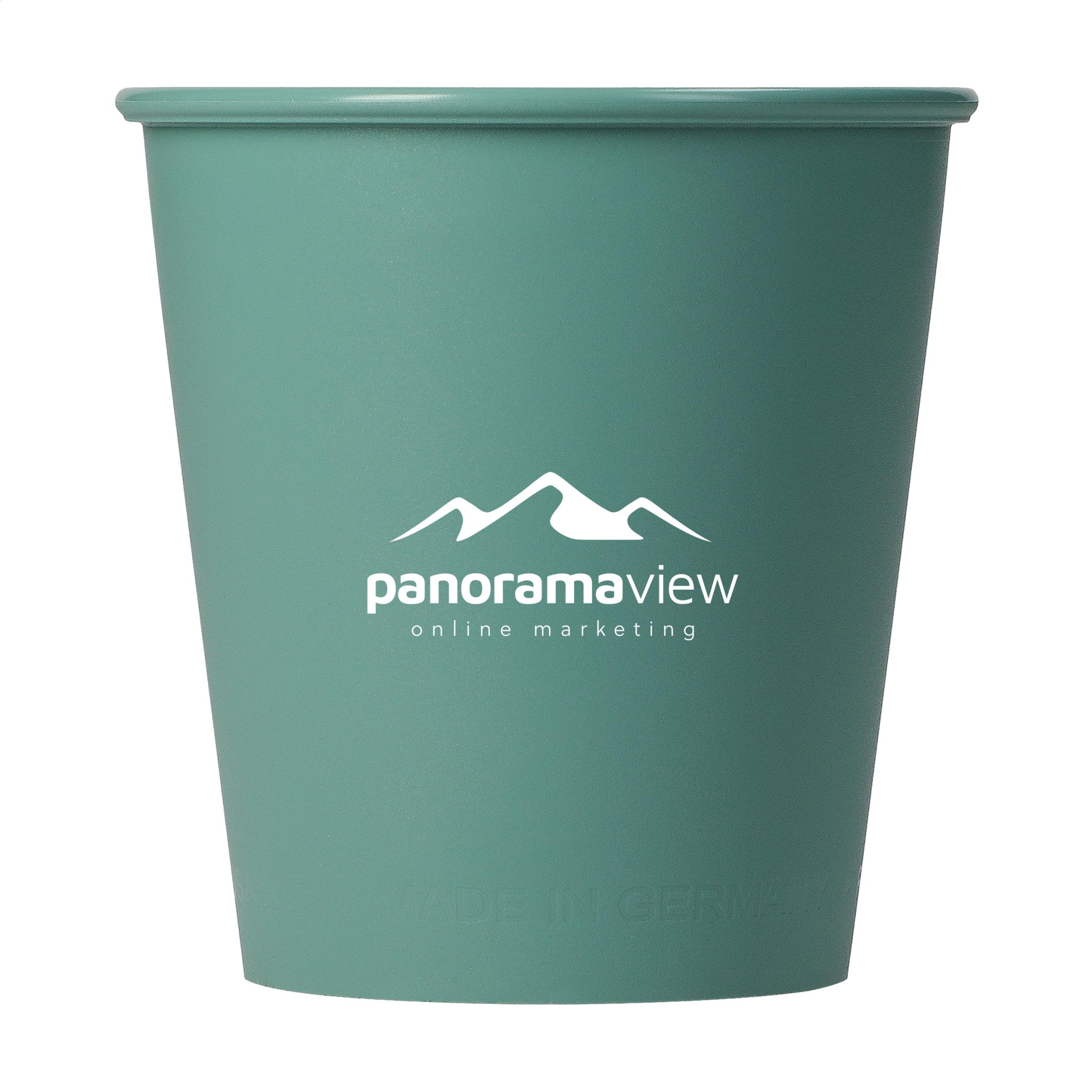 Återanvändbar drickskopp gjord av biobaserat material från förnybara källor. Denna stapelbara kopp är ett bra alternativ till engångskaffekoppen. Passar under nästan vilken kaffemaskin som helst. 100 % återvinningsbar och BPA-fri. Denna produkt tål diskmaskin. Handtvätt rekommenderas för att bevara avtrycket. Kapacitet 200 ml. Tillverkad i Tyskland.