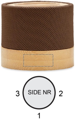 5.0 trådlös högtalare i RPET-hölje med bambudetaljer på toppen. Den har en LED-ljusindikator. 1 uppladdningsbart Li-ION 300 mAh-batteri ingår. Inkluderar en SD-kortport och en AUX/USB-kabel. Hands free call- funktion. Uteffekt: Utgångsdata: 3W, 3 Ohm och 5V. Speltid ca 3 timmar.