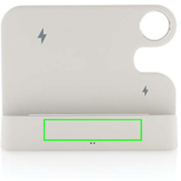 Logotrade presentreklam bild: Joltz dubbel 15W-laddare i RCS rplast, med plats för iWatch