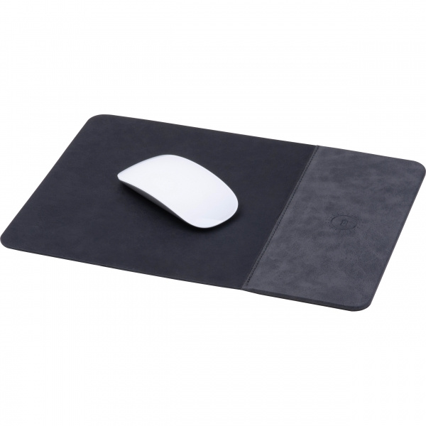 Musmatta tillverkad av polyuretan (PU) med trådlös laddningsyta. För att använda den trådlösa laddningsytan på 15 W med en kompatibel smartphone måste musmattan anslutas till en lämplig strömkälla med den medföljande USB-A till USB-C-laddningskabeln. Din logotyp är tryckt på den nedre tredjedelen av laddningsytan. Mitttryck på musmattan finns tillgängligt på begäran.